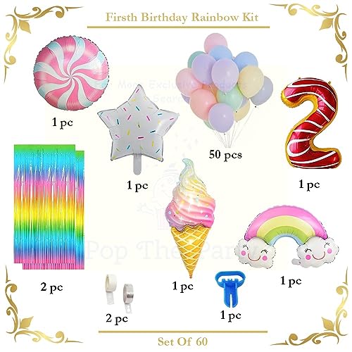 2 Number Ice Cream Balloon Garland Kit 60 Pcs Pastel Balloons Rainbow Ice Cream Curtains ArchGlue Dot Party Balloons Birthday And Ice Cream Theme Party Decorations (2 NUMBER)