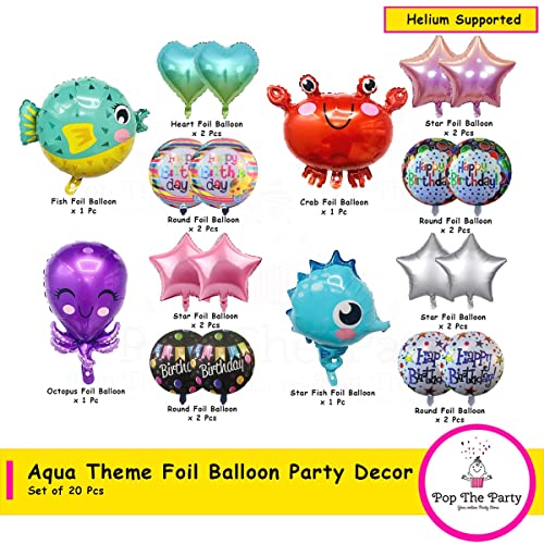 20Pcs Ocean Animals Balloons Under The Sea Balloons Ocean Party Supplies Decorations Seahorse Crab Octopus Pufferfish With Star And Round Foil Balloon For Birthday Under The Sea Ocean Party Decorations