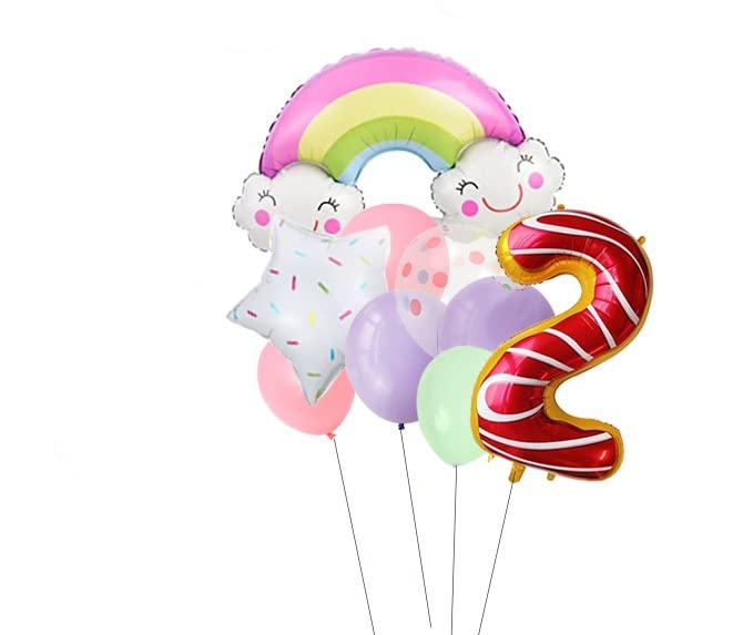 HomeBabyParty SuppliesPop The Party 2nd Birthday Rainbow Theme Decoration set with Rainbow foil balloon,Star Foil Balloon and Polka dot Balloon for Baby Birthday Decoration set of 10 (2nd)