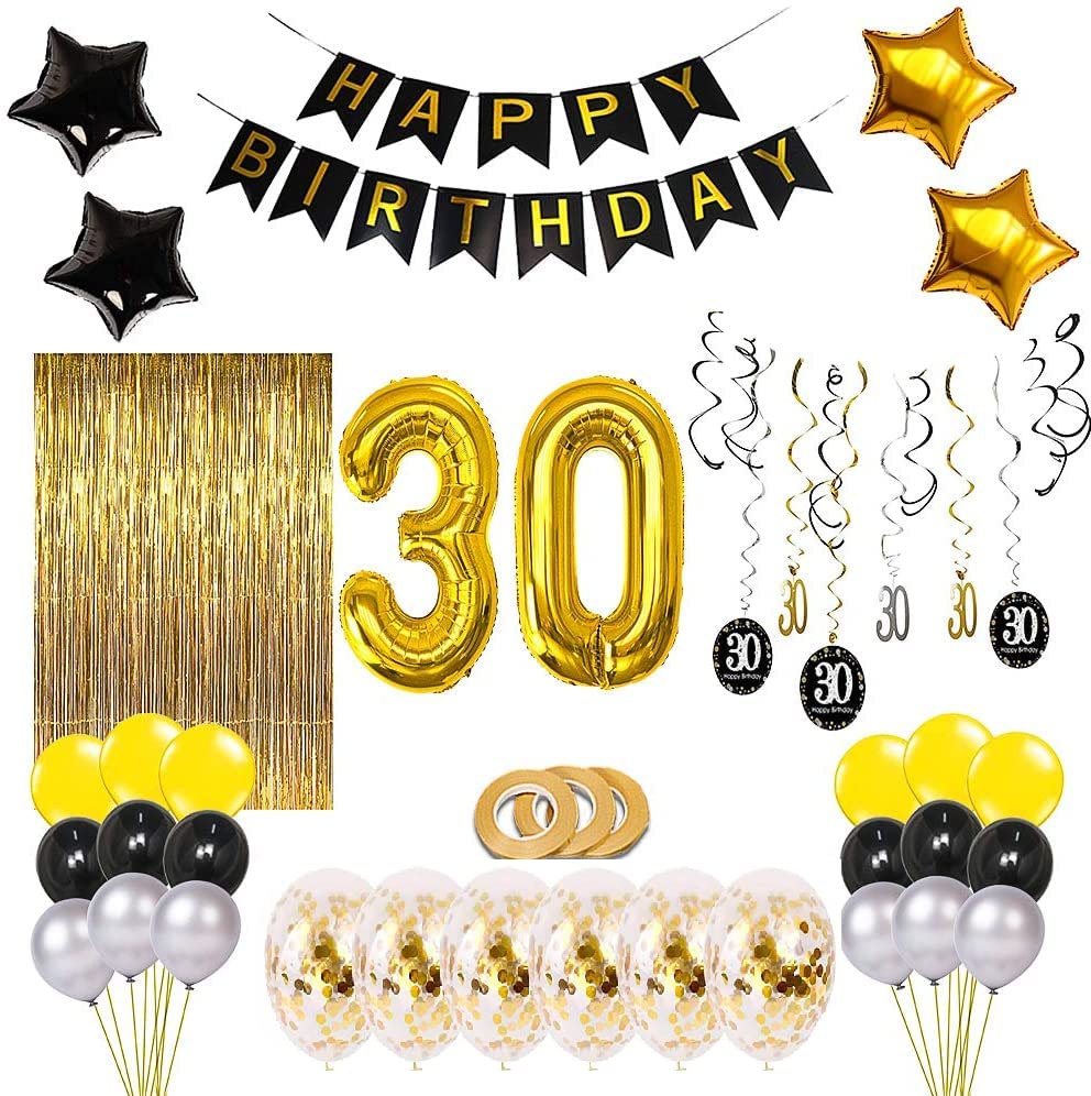 30 Party Decorations Black And Gold Birthday Decorations For Men With Huge 30 Happy Birthday Balloons Happy Birthday Banner Sparkling Hanging Swirls Foil Star Balloons Confetti Balloons