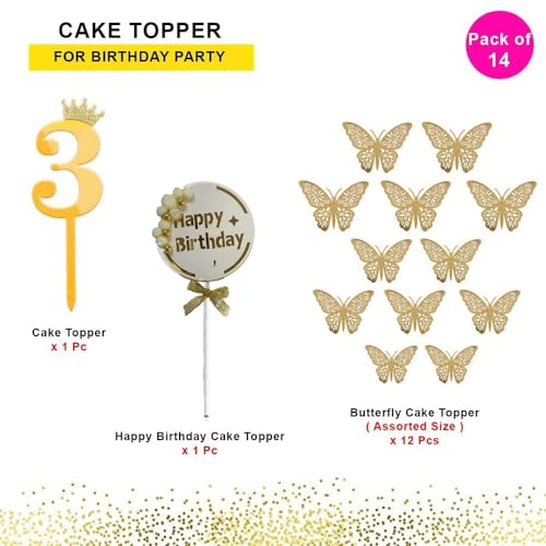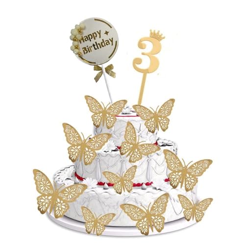 HomeBabyParty SuppliesPop The Party 3rd Birthday Cake Decorations Gold Supplies Big Set With Black Happy Birthday Cake Topper, 12 Butterfly Cake Topper And Cake Topper (3 NUMBER)