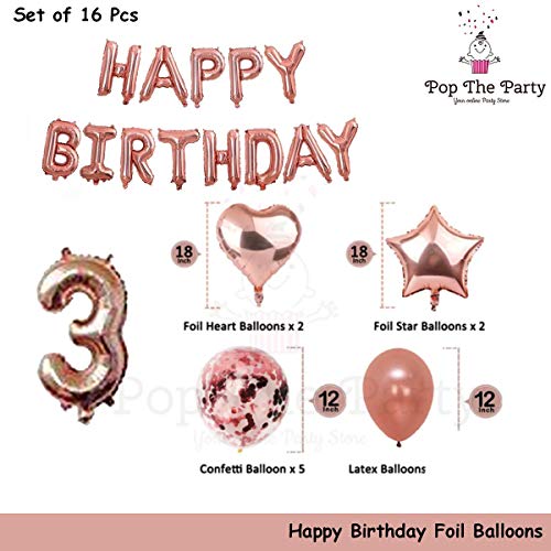 HomeBabyParty SuppliesPop The Party 3rd Year Birthday Party Decorations Rose Gold Supplies Big Set with Happy Birthday Balloons Banner and 3 Digit Balloon for Including Latex, Star, Heart and Confetti Balloons