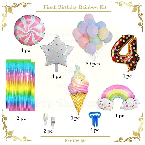 4 Number Ice Cream Balloon Garland Kit 60 Pcs Pastel Balloons Rainbow Ice Cream Curtains ArchGlue Dot Party Balloons Birthday And Ice Cream Theme Party Decorations (4 NUMBER)
