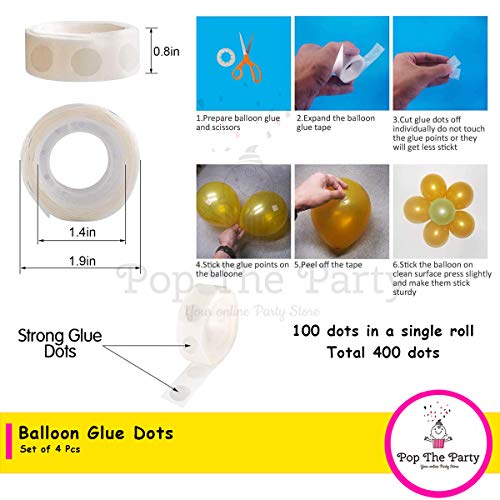 Pop The Party 400PCS (4 Rolls) Double Sided Balloon Glue for Dots Sticker Adhesive Point Tape,for Wedding, Christmas, Birthday Party, Home Decoration, 400pcs White