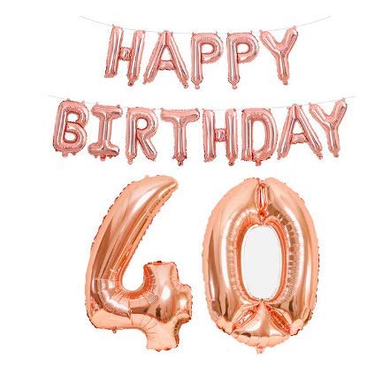 40Th Happy Birthday Aluminum Foil Letters Balloons For Party Supplies And Birthday Decorations (Rose Gold)