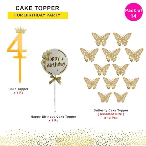 HomeBabyParty SuppliesPop The Party 4th Birthday Cake Decorations Gold Supplies Big Set With Black Happy Birthday Cake Topper, 12 Butterfly Cake Topper And Cake Topper (4 NUMBER)