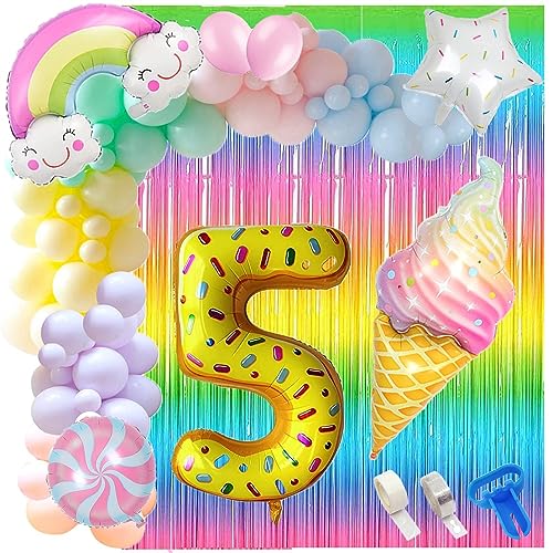 5 Number Ice Cream Balloon Garland Kit 60 Pcs Pastel Balloons Rainbow Ice Cream Curtains ArchGlue Dot Party Balloons Birthday And Ice Cream Theme Party Decorations (5 NUMBER)