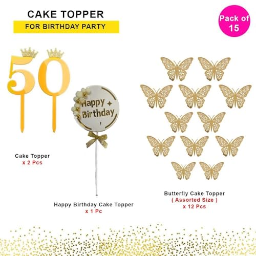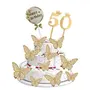 HomeBabyParty SuppliesPop The Party 50th Birthday Cake Decorations Gold Supplies Big Set With Black Happy Birthday Cake Topper, 12 Butterfly Cake Topper And Cake Topper (50 NUMBER)
