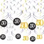 Pop The Party 50th Birthday Party Decoration 12 Packs Black Gold Silver Hanging Foil Spiral Swirl Ceiling for 50 Years Old Birthday Anniversary Party Supplies