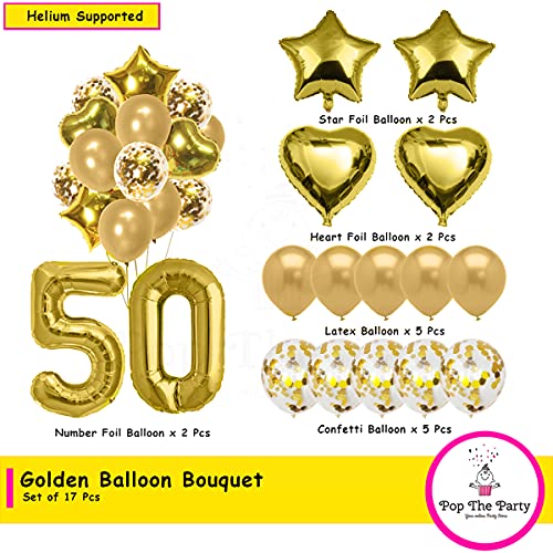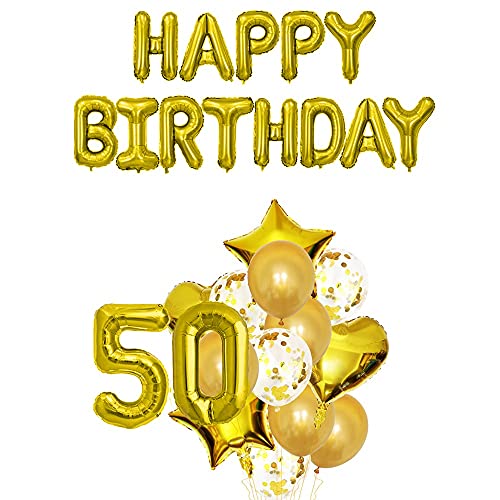 HomeBabyParty SuppliesPop The Party 50th Birthday Party Decorations Gold Supplies Big Set With Happy Birthday Balloons Banner and 50Digit Balloon for Including Latex, star, heart and Confetti Balloons