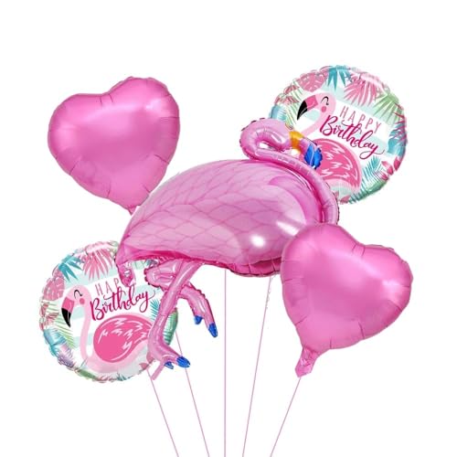 Pop The Party 5pcs Flamingo Theme Decoration Set with Round Foil Balloon for Birthday Décor