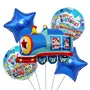 5Pcs Jumbo Train With Round And Star Foil Balloons Colorful Train Mylar Balloons For Car Themed Party Supplies Decorations Baby Shower Wedding Birthday Party Favors