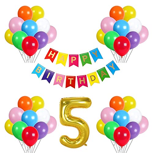 5th Birthday Decoration kit with Happy Birthday Banner 5 Digit and Latex Balloon