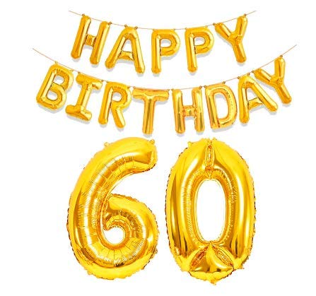 60Th Happy Birthday Aluminum Foil Letters Balloons For Party Supplies And Birthday Decorations (Gold)