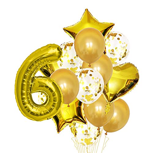 Pop The Party 6th Number Balloon with 6 Digit Balloon for Including Gold Latex, Star, Heart and Confetti Balloons