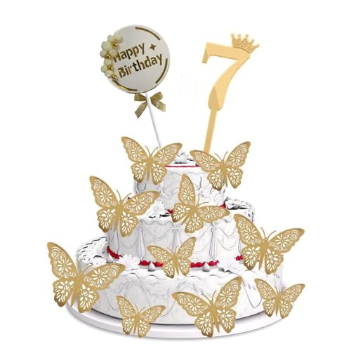 HomeBabyParty SuppliesPop The Party 7th Birthday Cake Decorations Gold Supplies Big Set With Black Happy Birthday Cake Topper, 12 Butterfly Cake Topper And Cake Topper (7 NUMBER)