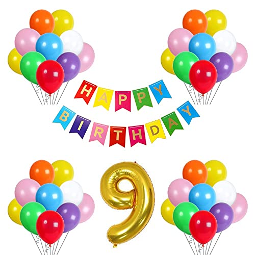 9Th Birthday Decoration Kit With Happy Birthday Banner 9 Digit And Latex Balloon