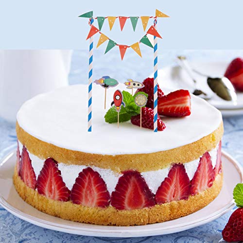 Cake Topper Cute Rocket Toppers Picks Flag Banner Happy Birthday Party Baby Shower Decorations