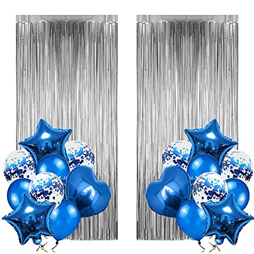 Balloon Curtain Party Colorful 22Pcs Blue Silver Set Wedding Decoration Birthday Balloons Confetti Air Balls And Curtain Birthday Party Decorations Kids Adults Balloons