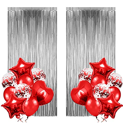 Balloon Curtain Party Colorful 22Pcs Silver Red Set Wedding Decoration Birthday Balloons Confetti Air Balls And Curtain Birthday Party Decorations Kids Adults Balloons