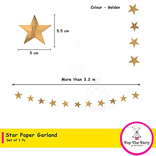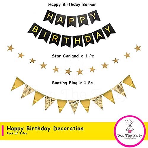 Pop The Party Birhtday Banner and Golden Star Garland with Gold Bunting Flag