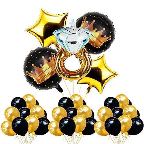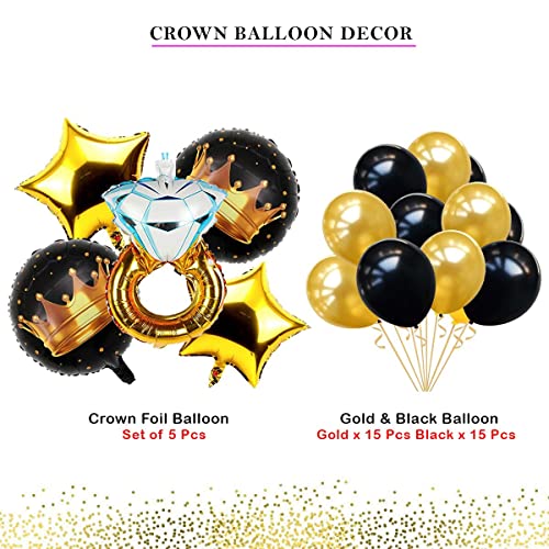 Pop The Party Black and Gold Birthday Decorations Multi-Ring Crown Themed Celebration FOIL Balloon Combo Set(5pcsringkitp37)