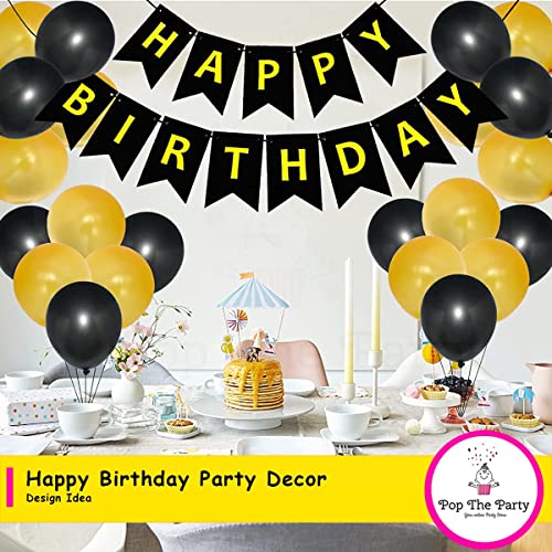 Pop The Party Black and Gold Theme Birthday Decoration with Latex Balloon for 18th,21st,30th,40th Birthday Decoration