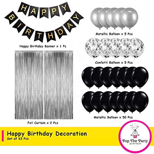 HomeBabyParty SuppliesPop The Party Black and Silver Birthday Decorations Set - Cardstock, Curtains, Confetti, Metallic Balloons - 63 Pack Party Supplies