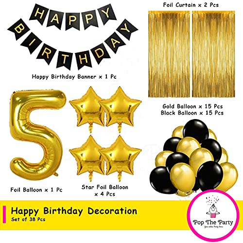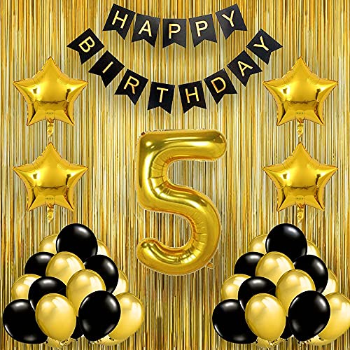 HomeBabyParty SuppliesBlack Gold 5th Birthday Party Decorations with Birthday Banner Star Latex Balloons Curtains and 5 Digit No. Set of 39 Supplies (5thBirthday Party Decoration Gold)