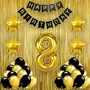 Pop The Party Black Gold 8th Birthday Party Decorations with Birthday Banner, Star, Latex Balloons, Curtains and 8 Digit No. Set of 39 Supplies