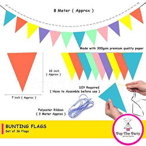 Bunting Multi Color Pastel Flags Banner for Kids Room Play School Decoration Birthday Party Baby Shower(Pack of 3) material Paper