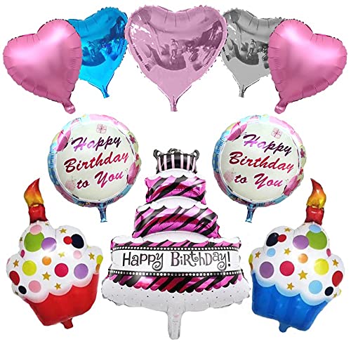 Cake foil Balloon Set with Muffin Shape Heart and Round Happy Birthday Foil Balloon for Party Decoration