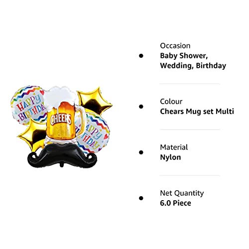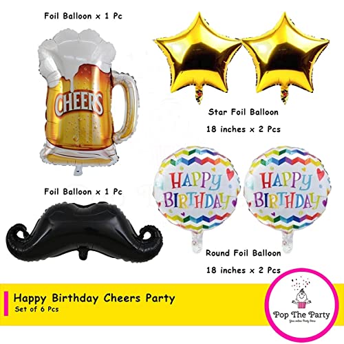HomeBabyParty SuppliesPop the Party Cheers Beer Mug Foil Balloon Set for Bear Theme Party - Happy Birthday Decoration With Star, Round, and Mustache Balloons (Set of 6)