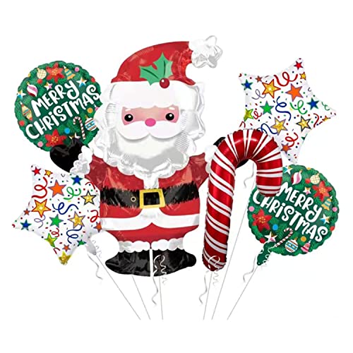 • PACK INCLUDES: 5 BALLOONS:1 Santa Claus Shaped Foil | 2 Green Foil Sock shaped | 2 Red Star Foil Balloons