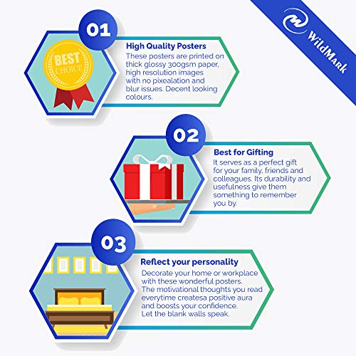 The poster is printed on 300 GSM thick glossy paper (Size-12 inch x 18inch 30.48 x 0.05 x 45.72 cms) is on the finest brand for selling great Artwork specifically posters. The unique designs also serves as a great gift for inspiring someone to begin something. These motivational wall posters are without frame but it has two sided tape. These wall posters decorate your home and instantly brighten day and boost your motivation. The surface you wish to attach these posters must be clean and free from dust. These wall posters can be used as home and office decoration item and can also be used in hostels and study room classrooms and corridors as well as shops and cafes. It can be used as restaurant decoration item also.The actual colours may vary slightly due to differences in screen displays.