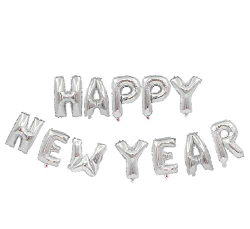 Total of 12 pieces: HAPPY NEW YEAR in 16 inch (Flat) Silver Color