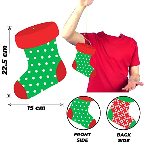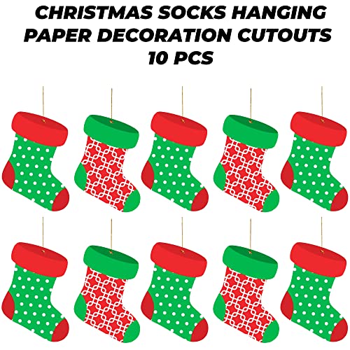 TOYXE Sock Paper Hanging Merry Christmas Decoration Red Green Pack of 10 Pcs
