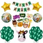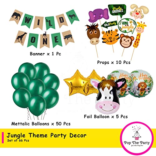 Package Includes: This Beautiful Jungle Theme Party Decorations Set Include: 1X Wild One Banner10 Pcs Props50Pcs Green Balloon1 Cow Foil Balloon2 Round Balloon2Star Foil Balloon