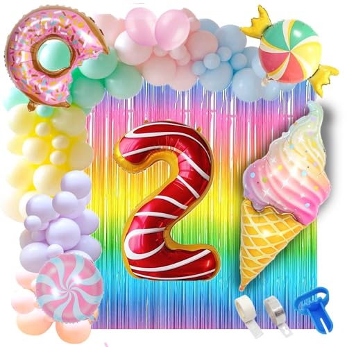 HomeBabyParty SuppliesDonut Birthday Party Decorations Rainbow Theme Balloon Arch Kit with Donut 2Number Balloons for Baby Shower Ice Cream Party Decorations Donut Grow Up Party Supplies (Pack Of 60)