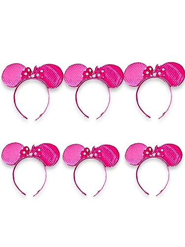 Fancy Minnie Mini Mouse Ears Headband Dress Disney Spotted Red Bow Ladies Kids Girls(Pack of 6)