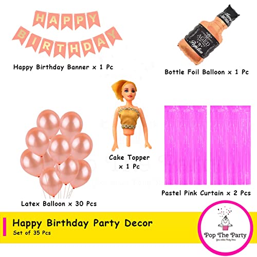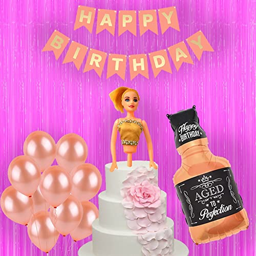 HomeBabyParty SuppliesGirl Birthday Decoration Set with Doll Cake TopperBannerPink CurtainAged to Perfecion Bottle and Latex Balloon for 1st 2nd 3rd 4th 5th Birthday Decor