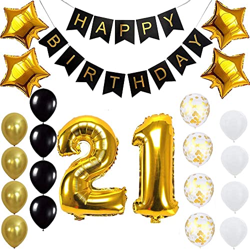 Pop The Party Gold 21st Birthday Decoration Kit With Banner ,Star Latex and confetti Balloon Set of 23