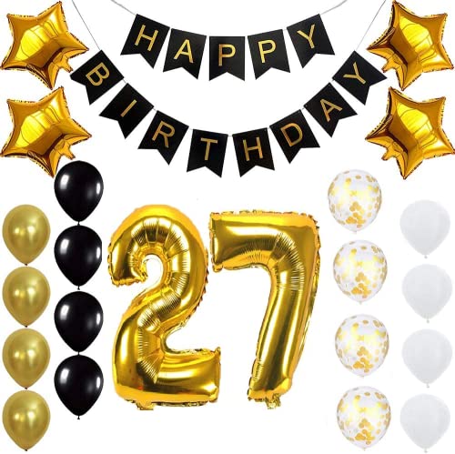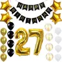 Pop The Party Gold 27th Birthday Decoration Kit With Banner ,Star Latex and confetti Balloon Set of 23