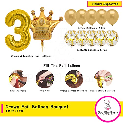 HomeBabyParty SuppliesPop The Party Gold 3 Digit Number foil Balloon with Crown Foil, Confetti and Latex Balloon for Birthday Anniversary Balloon Set of 12