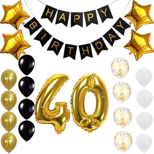 Pop The Party Gold 40th Birthday Decoration Kit With Banner ,Star Latex and confetti Balloon Set of 23