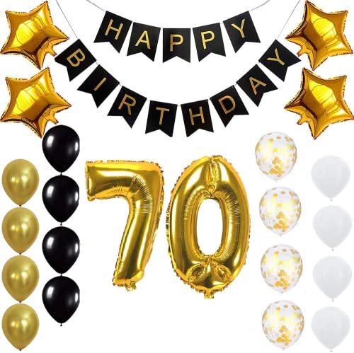 Pop The Party Gold 70th Birthday Decoration Kit With Banner ,Star Latex and confetti Balloon Set of 23