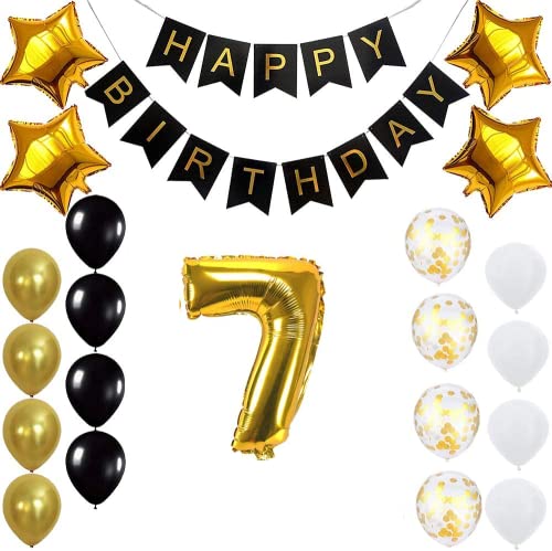 Pop The Party Gold 7th Birthday Decoration Kit With Banner ,Star Latex and confetti Balloon Set of 23
