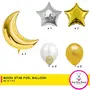 Package Included: 1pc Gold Moon Shaped Foil Balloons 1pcs Silver Star 1pcs Gold star 4 latex balloon Shaped Foil Balloons.