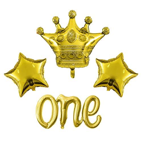 Gold One Foil Balloon Set with Star and Crown Balloon for Use Birthday Anniversary Party Decoration