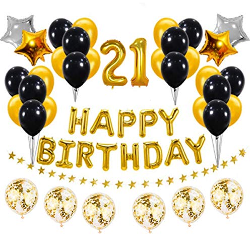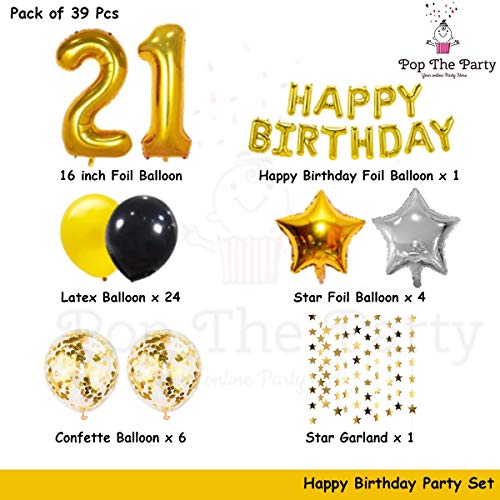 HomeBabyParty SuppliesPop The Party Golden and Black 21th Birthday Party Decorations Set- Gold Happy Birthday Banner,Foil Number Balloons, Latex Balloons and More for 21 Years Old Birthday Party Supplies